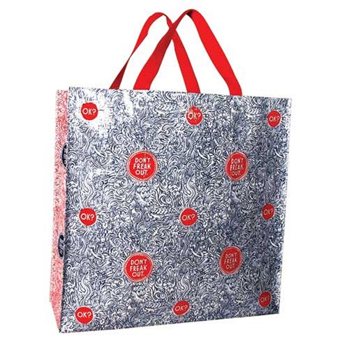 "Blue Q Shoppers Don't Freak Out 80% Post Consumer Recycled Material Reusable Tote Bags 16" x 16"" Overview