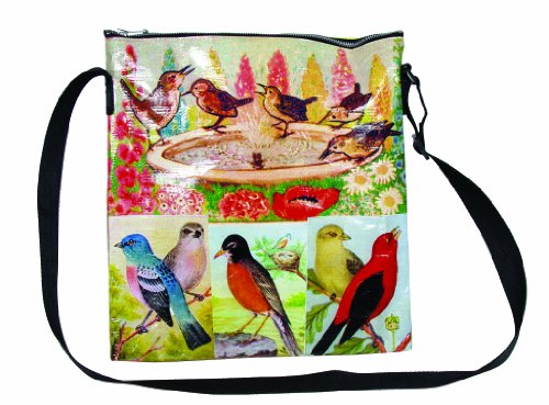 These vintage sweet and nesting little creatures are a pretty bunch indeed. Slim, simple construction without unnecessary bells and whistles -- a groovy shoulder bag doesn't have to bust anyone's budget, ya know. 13-inch by 14-inch with an interior phone pocket and metal YKK zipper. Made of 95-percent recycled woven polypropylene.