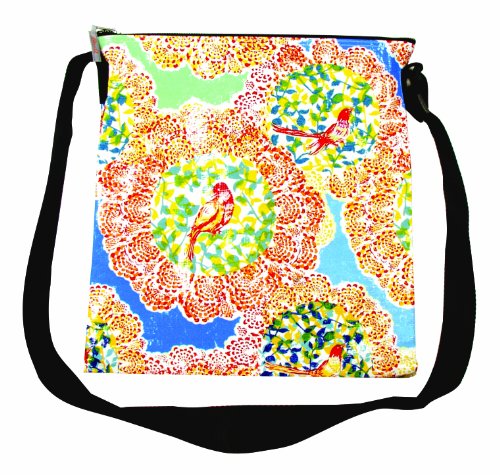 Birds and lace adorn this beauty of a bag. By Miki Amano. Slim, simple construction without unnecessary bells and whistles -- a groovy shoulder bag doesn't have to bust anyone's budget, ya know. 13-inch by 14-inch with an interior phone pocket and metal YKK zipper. Made of 95-percent recycled woven polypropylene.